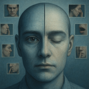 - Microfear (micro-miedo): estiramiento horizontal de labios, elevación sutil de cejas internas, apertura ocular breve. Frecuente en preguntas de alta carga o cuando el sujeto anticipa consecuencias.
